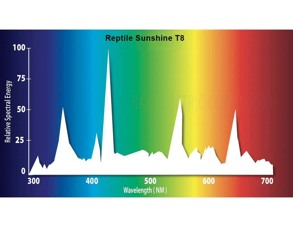 Manufactured in Europe in T8 or T12 technology, these lamps save 30 to 40% energy compared to traditional T12 fluorescent lamps (consumes 32W instead of 40W, 18W instead of 20W, etc. Reptile Sunshine has an average rated life of 24,000 hours and can be installed in electronic ballasts fixtures or in existing hoods with starters.